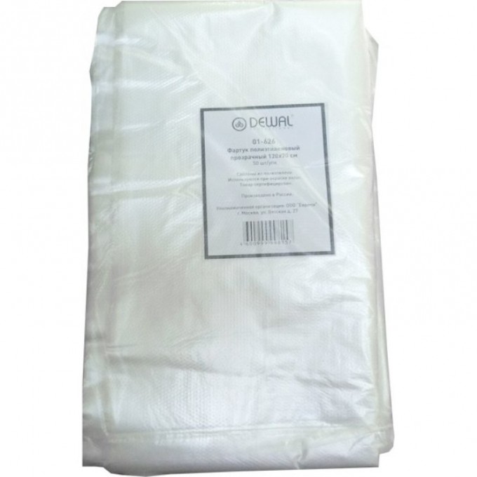 Фартук полиэтиленовый прозрачный 120х70 см 50 шт/упк DEWAL 01-626